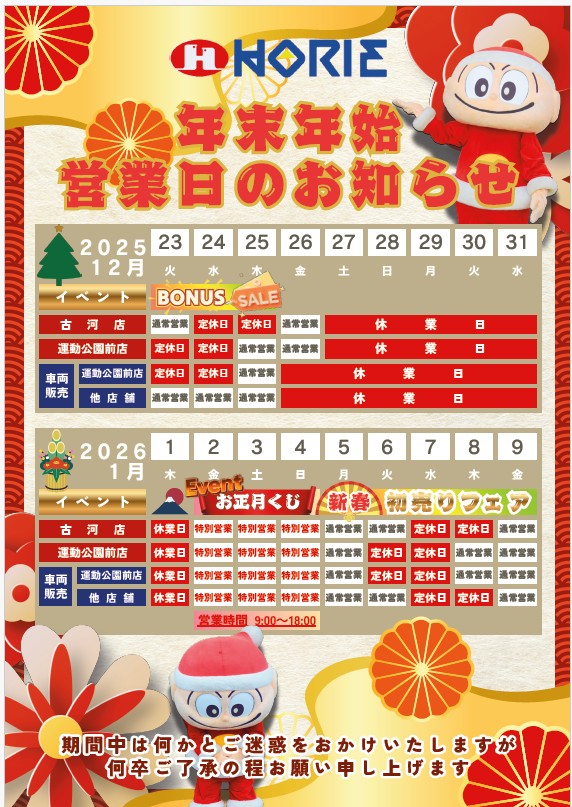 12月21日(土)・22日(日)にホリエオート古河本店にて